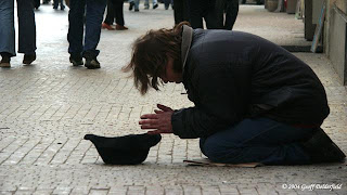 Yet even if I am prepared, there are still more difficulties. I cannot always stop to spend time with the needy. I have responsibilities to colleagues and family members, responsibilities to keep my word about when I’ll be a certain places, and the duties attendant with work and school that mean I must be diligent about completing the tasks set out for me. But there are times when I can stop, when I can try to help without betraying my commitments to others, and at those times I should. Furthermore, it seems reasonable to assume that if I can learn about the resources that exist to aid the needy, so can they. That they are still begging on the street may mean that they have little interest in these services and thus little interest in what I can offer other than money. I should be prepared to accept that to, to be rejected even by the one asking for help.
